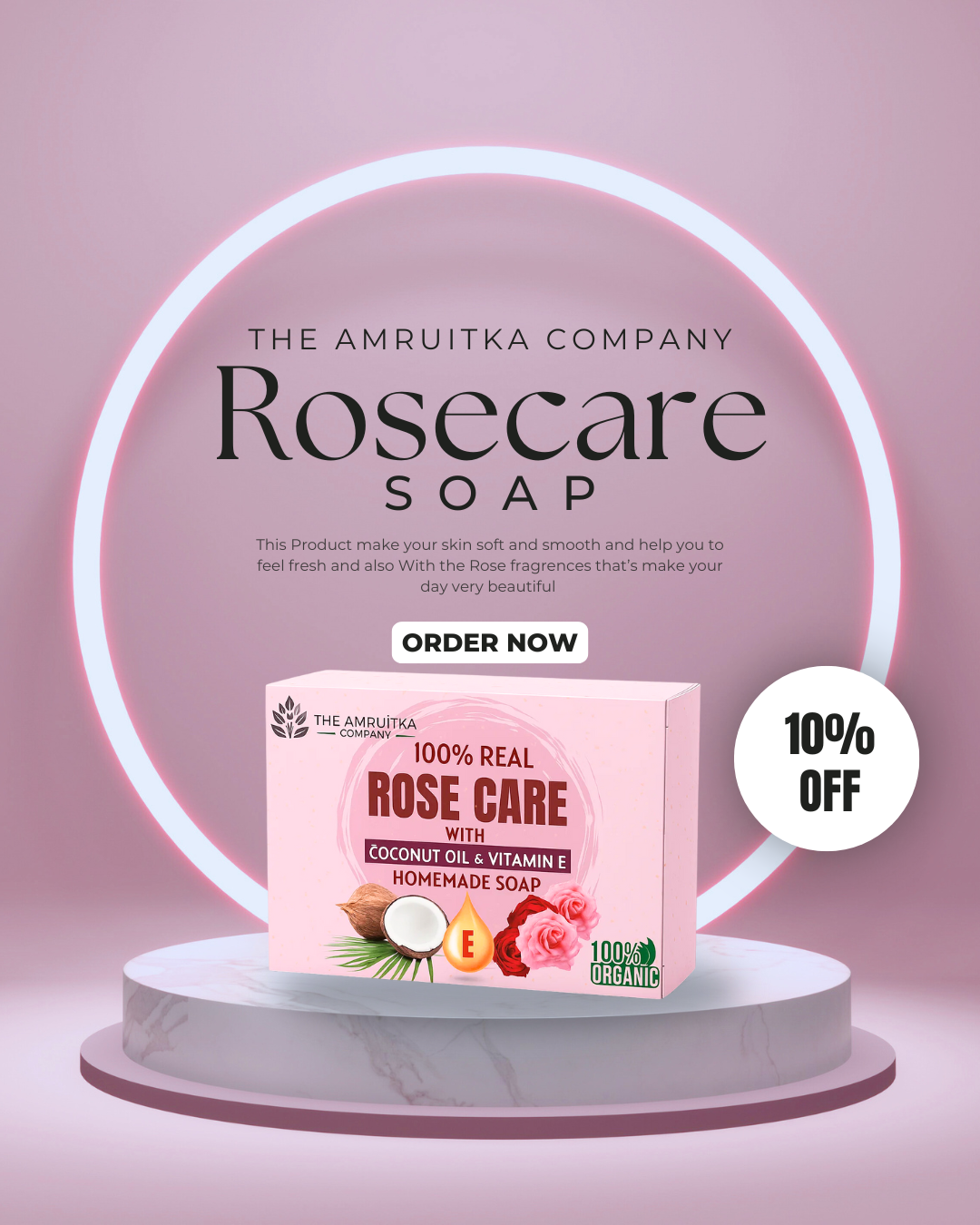 🌹 Amrutika Rose Care Handmade Soap is thoughtfully handcrafted using traditional methods to deliver pure, gentle, and effective skincare for everyday use. Made with real rose extracts, this soap helps brighten the skin, improve elasticity, and provide a naturally glowing appearance.